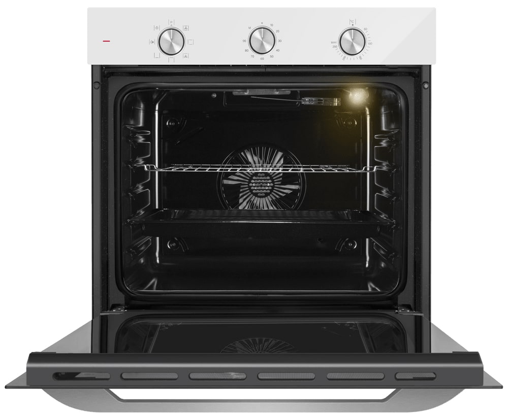 Белый фасад духовки — классический вариант: именно в белом цвете эти приборы производились многие десятилетия. Он стильно выглядит, менее маркий, более удобный в уходе: подойдет как для классических, так и для современных интерьеров. Кроме того, белая духовка будет оптимальным вариантом для небольшой кухни, так как этот цвет зрительно расширяет пространство.