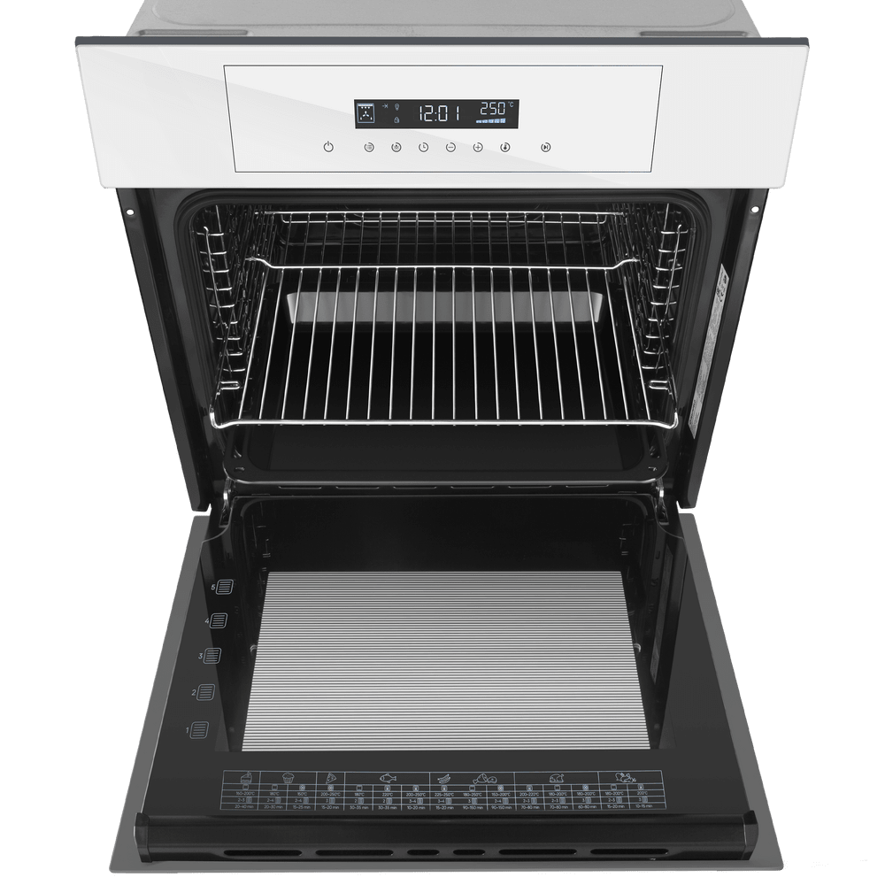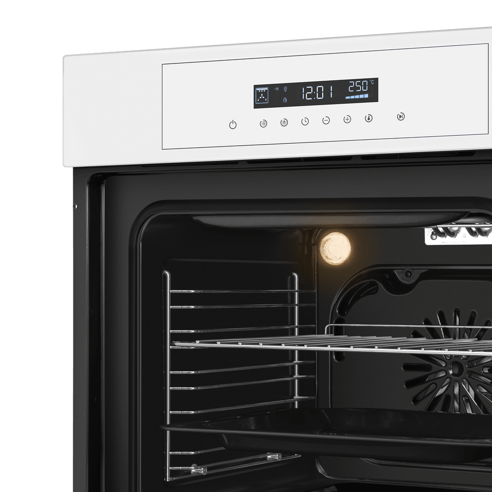 Белый фасад духовки — классический вариант: именно в белом цвете эти приборы производились многие десятилетия. Он стильно выглядит, менее маркий, более удобный в уходе: подойдет как для классических, так и для современных интерьеров. Кроме того, белая духовка будет оптимальным вариантом для небольшой кухни, так как этот цвет зрительно расширяет пространство.