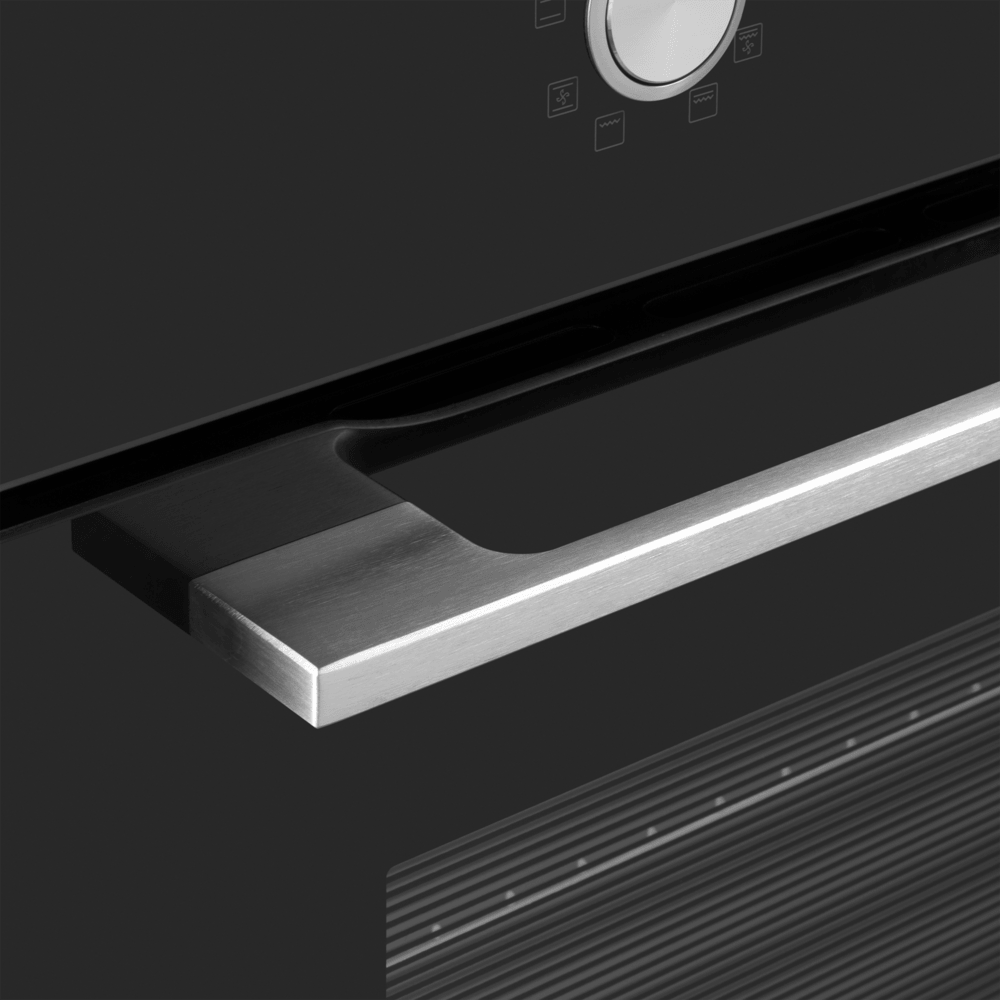 Наиболее распространенным решением является черный фасад духовки, нередко с деталями из металла — например, нержавеющей стали. Этот вариант чаще всего выбирают, если кухня оформлена в современном стиле — хай-тек, минималистическом, техно. Следует помнить, что на черном лучше заметны загрязнения: брызги воды, отпечатки пальцев, разводы, так что эти фасады требуют тщательного ухода.