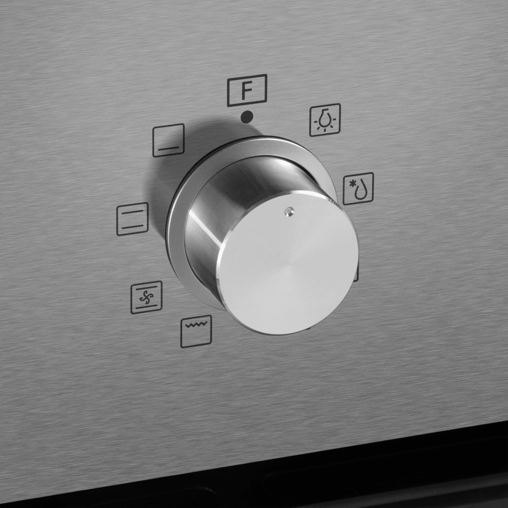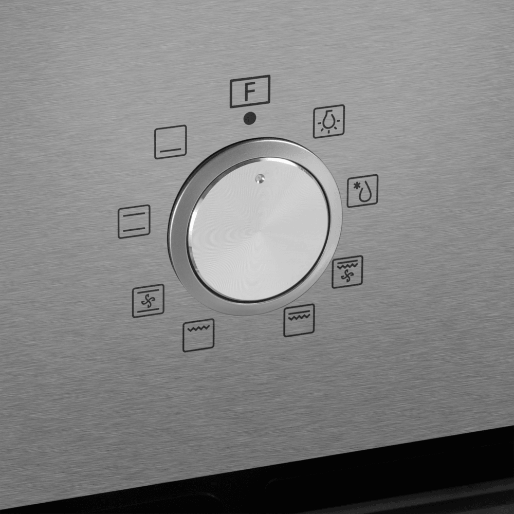 Особенности дизайна и внешней панели управления — также важный пункт при выборе духовки на кухню. В данной модели нужно обратить внимание на цвет — нержавеющая сталь, охлаждение двери, чтобы поверхность и мебель вокруг не нагревались. Механическая панель управления позволяет быстро разобраться в настройке программ и не требует чрезмерных усилий.
