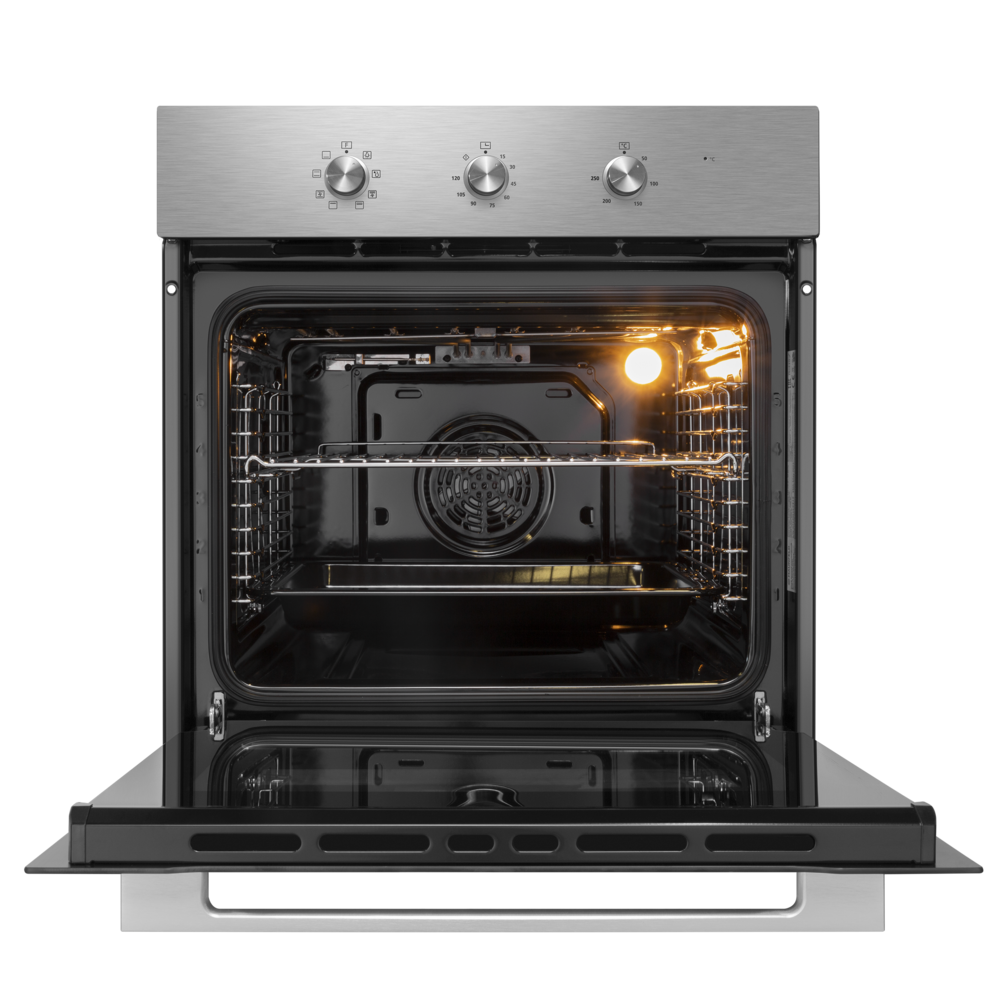 Как известно, стандартная ширина кухонной тумбы составляет около 60 см — поэтому за стандартную ширину встраиваемого духового шкафа принимают 59,5 см. Такие духовки имеют по 3–4 уровня приготовления, в них можно приготовить достаточно объемные блюда. Минимальное значение ширины духовки также соотносится с размерами тумбы для встраивания — оно составляет 44–45 см. Это хороший выбор для небольшой кухни, однако узкие духовые шкафы имеют свои недостатки — в частности, в них невозможно приготовить большой пирог или торт, запечь целый окорок, индейку или большую рыбу.