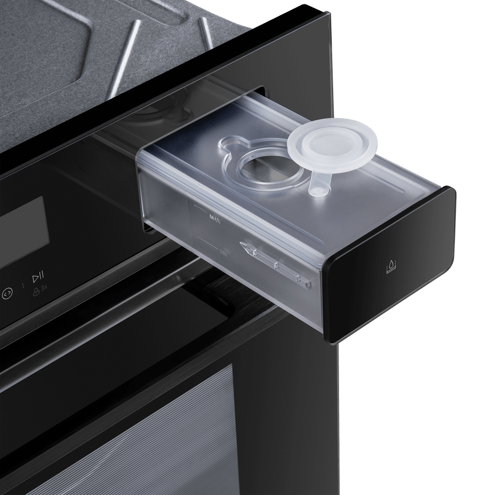 Паровая (Aqua Clean, EasyClean, HydroClean, гидролиз) — вам нужно налить в специальную емкость воду (простую или с моющим средством) и оставить в камере на полчаса. Очистка проходит при небольших температурах, жир расщепляется с помощью пара и стекает в поддон.