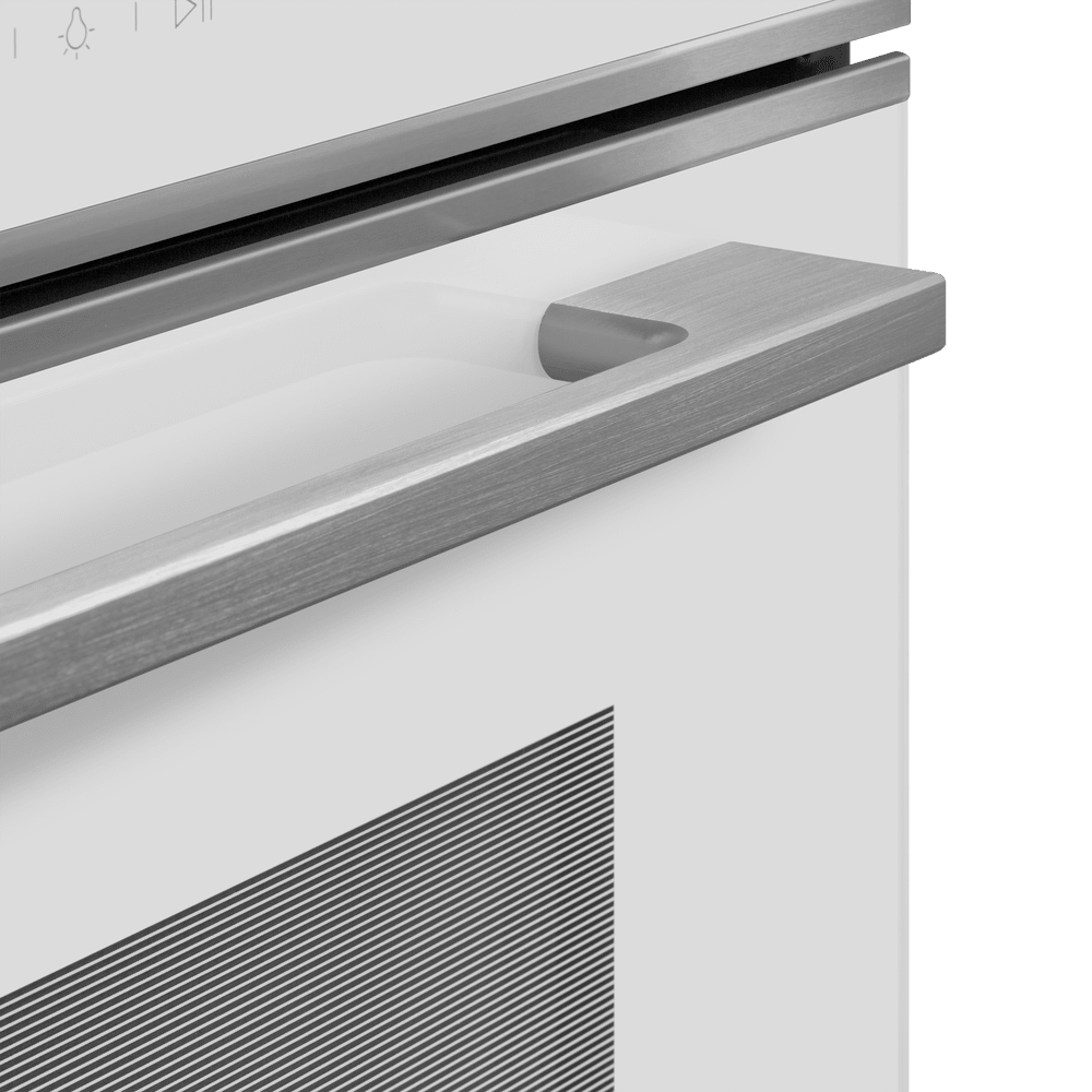 Особенности дизайна и внешней панели управления — также важный пункт при выборе духовки на кухню. В данной модели нужно обратить внимание на цвет — белый, охлаждение двери, чтобы поверхность и мебель вокруг не нагревались.