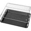 В стандартную комплектацию любого духового шкафа входят один или два противня — эмалированных или с антипригарным покрытием — и решетка. Единственный противень, как правило, имеет низкие бортики и предназначается для приготовления выпечки. Если духовка комплектуется двумя противнями, то второй отличается более высокими бортиками — его можно использовать для запекания мяса, птицы, овощных блюд. На решетке в духовке, не оснащенной грилем, обычно устанавливаются формы для запекания — стальные, керамические или стеклянные. В духовках премиум-класса количество противней может быть увеличено: к стандартному комплекту добавляются противни с перфорацией для мяса, специальные поддоны для сбора выделившегося сока.