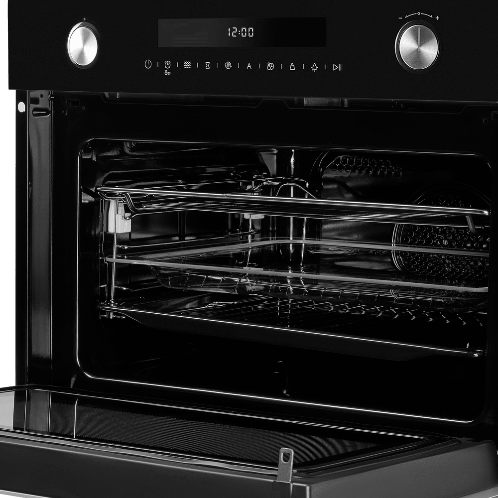Компактные духовки — оптимальный выбор для тех, кто хочет питаться вкусно и разнообразно, но не располагает кухней большой площади. Подобные модели подойдут также для небольших семей или для тех, кто привык готовить достаточно редко. Объем рабочей камеры у компактных моделей не превышает 55 литров. Ширина их остается стандартной — около 60 см, высота составляет обычно 45 см, а энергопотребление и мощность несколько меньше, чем у полноразмерных моделей. Компактные духовки имеют до трех уровней приготовления.