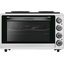 Верхний и нижний нагрев + конвекция — удобный, но достаточно энергоемкий режим: при его выборе увеличенное потребление электроэнергии компенсируется уменьшением времени приготовления и возможностью размещения в камере нескольких блюд одновременно на разных уровнях.