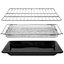 В стандартную комплектацию любого духового шкафа входят один или два противня — эмалированных или с антипригарным покрытием — и решетка. Единственный противень, как правило, имеет низкие бортики и предназначается для приготовления выпечки. Если духовка комплектуется двумя противнями, то второй отличается более высокими бортиками — его можно использовать для запекания мяса, птицы, овощных блюд. На решетке в духовке, не оснащенной грилем, обычно устанавливаются формы для запекания — стальные, керамические или стеклянные. В духовках премиум-класса количество противней может быть увеличено: к стандартному комплекту добавляются противни с перфорацией для мяса, специальные поддоны для сбора выделившегося сока.