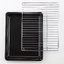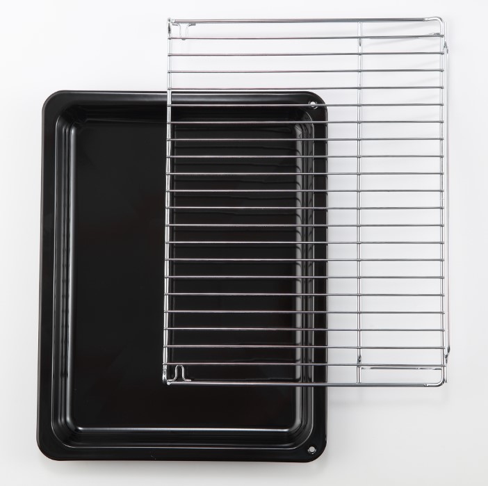 В стандартную комплектацию любого духового шкафа входят один или два противня — эмалированных или с антипригарным покрытием — и решетка. Единственный противень, как правило, имеет низкие бортики и предназначается для приготовления выпечки. Если духовка комплектуется двумя противнями, то второй отличается более высокими бортиками — его можно использовать для запекания мяса, птицы, овощных блюд. На решетке в духовке, не оснащенной грилем, обычно устанавливаются формы для запекания — стальные, керамические или стеклянные. В духовках премиум-класса количество противней может быть увеличено: к стандартному комплекту добавляются противни с перфорацией для мяса, специальные поддоны для сбора выделившегося сока.