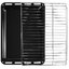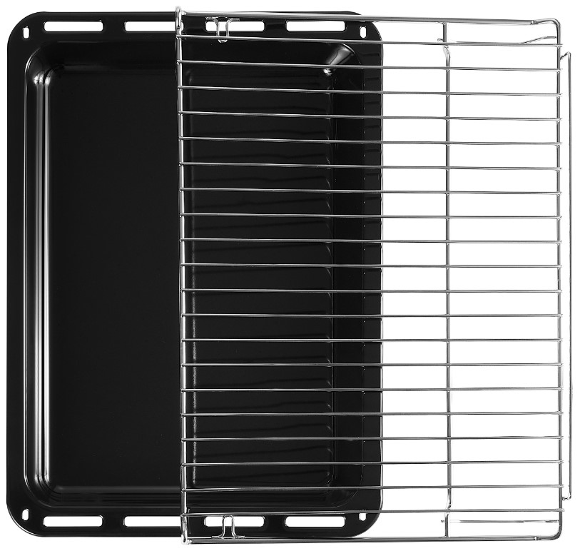 В стандартную комплектацию любого духового шкафа входят один или два противня — эмалированных или с антипригарным покрытием — и решетка. Единственный противень, как правило, имеет низкие бортики и предназначается для приготовления выпечки. Если духовка комплектуется двумя противнями, то второй отличается более высокими бортиками — его можно использовать для запекания мяса, птицы, овощных блюд. На решетке в духовке, не оснащенной грилем, обычно устанавливаются формы для запекания — стальные, керамические или стеклянные. В духовках премиум-класса количество противней может быть увеличено: к стандартному комплекту добавляются противни с перфорацией для мяса, специальные поддоны для сбора выделившегося сока.