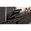 Наиболее распространенным решением является черный фасад духовки, нередко с деталями из металла — например, нержавеющей стали. Этот вариант чаще всего выбирают, если кухня оформлена в современном стиле — хай-тек, минималистическом, техно. Следует помнить, что на черном лучше заметны загрязнения: брызги воды, отпечатки пальцев, разводы, так что эти фасады требуют тщательного ухода.
