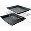 В стандартную комплектацию любого духового шкафа входят один или два противня — эмалированных или с антипригарным покрытием — и решетка. Единственный противень, как правило, имеет низкие бортики и предназначается для приготовления выпечки. Если духовка комплектуется двумя противнями, то второй отличается более высокими бортиками — его можно использовать для запекания мяса, птицы, овощных блюд. На решетке в духовке, не оснащенной грилем, обычно устанавливаются формы для запекания — стальные, керамические или стеклянные. В духовках премиум-класса количество противней может быть увеличено: к стандартному комплекту добавляются противни с перфорацией для мяса, специальные поддоны для сбора выделившегося сока.
