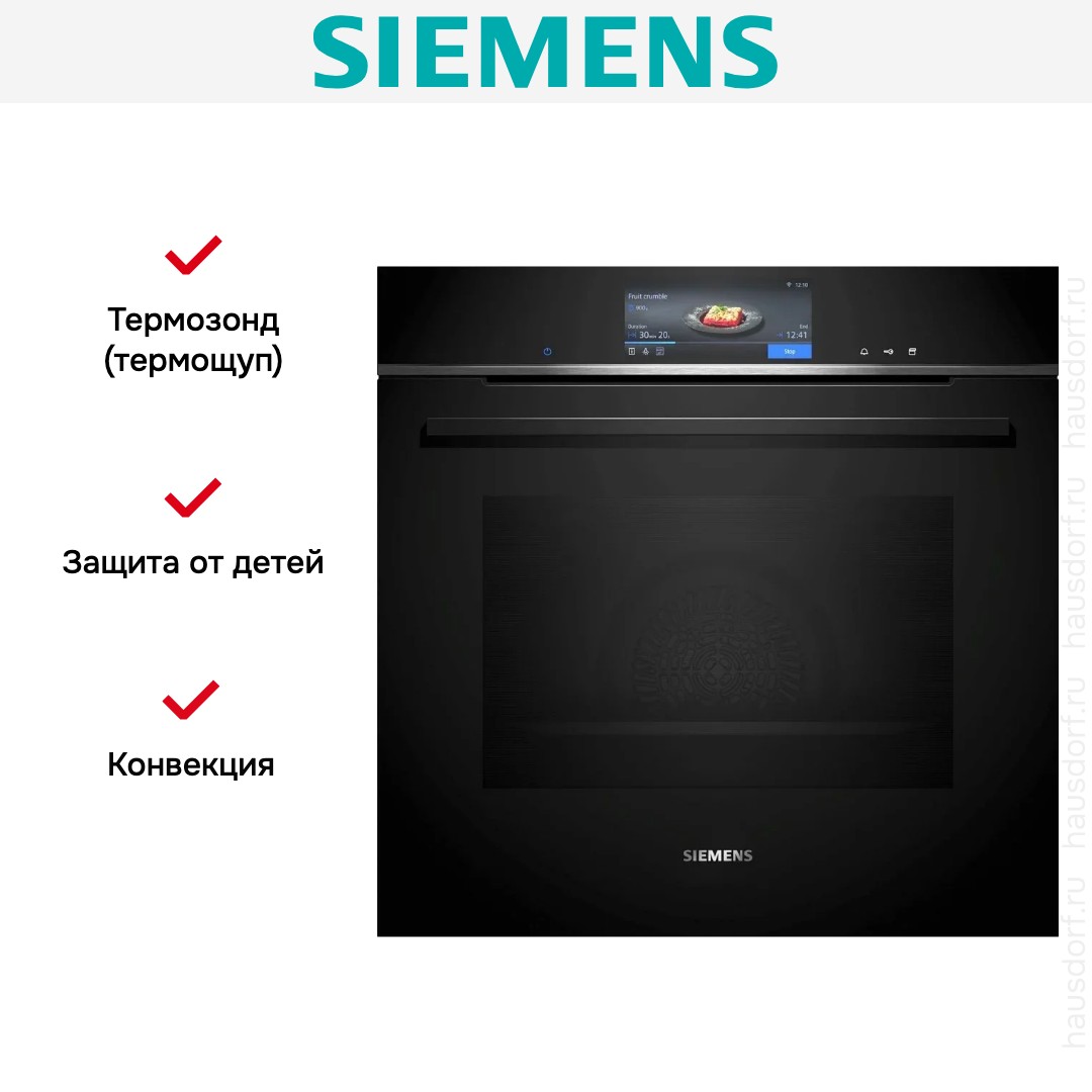 Готовьте свои лучшие блюда и пробуйте новые рецепты с духовым шкафом Siemens HS758G3B1! Стандартные размеры и большой объем внутренней камеры — выбор тех, кто много готовит для семьи или частых праздничных встреч с друзьями. Желательно заранее продумать расположение такой модели в кухонном гарнитуре.