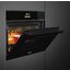 Стильная встраиваемая модель привлекает внимание черным фасадом из особо прочного стекла в сочетании с медным профилем. Трехслойное остекление и тангенциальная система охлаждения гарантируют безопасное использование и низкую температуру дверцы. В набор режимов приготовления входят гриль, конвекция, нагрев при помощи заднего ТЭНа, режим горячего воздуха. Для быстрого нагрева используется режим Турбо. Гладкая панель управления без выступов удобна в очистке, на ней расположен большой цветной сенсорный дисплей с таймером, позволяющий выбрать режим работы, задать отсрочку старта и время автоматического выключения в конце приготовления. Температура в камере регулируется в диапазоне от 30 до 250 °C. 50 встроенных рецептов максимально облегчают управление устройством: для них достаточно выбрать только тип блюда и его вес. Пользователь может сохранить в памяти устройства до 10 персональных рецептов. В числе дополнительных режимов работы — поддержание тепла, размораживание по времени или по весу, поднятие теста, подогрев посуды. Противни на металлических направляющих размещаются на трех уровнях, возможно одновременное приготовление нескольких блюд.