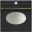 Встраиваемый духовой шкаф Smeg SF800AO относится к коллекции Coloniale: его отличает стильный фасад цвета антрацит, овальное стекло в дверце и фурнитура цвета латуни в ретро-стиле. Модель легко встраивается в колонну вместе с другой бытовой техникой благодаря стандартной ширине 60 см. Камера большого объема 70 литров позволяет разместить противни на пяти уровнях, снабженных металлическими направляющими. В верхней части фасада находится панель управления, включающая два поворотных программатора для задания температуры приготовления и режима работы, а также аналоговые часы с функцией таймера. Электронный контроль позволяет выбрать температуру приготовления с точностью до одного градуса. Температура может быть задана в диапазоне от 50 до 250 градусов. Максимальное время готовки, которое можно выставить при помощи таймера, составляет 180 минут. Устройство оснащено верхним и нижним жаром, грилем и вентилятором. В числе 6 режимов приготовления можно выделить режим ECО, сочетающий максимальную температуру и минимальные затраты электроэнергии.
