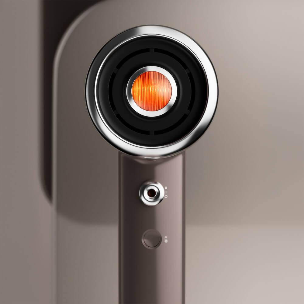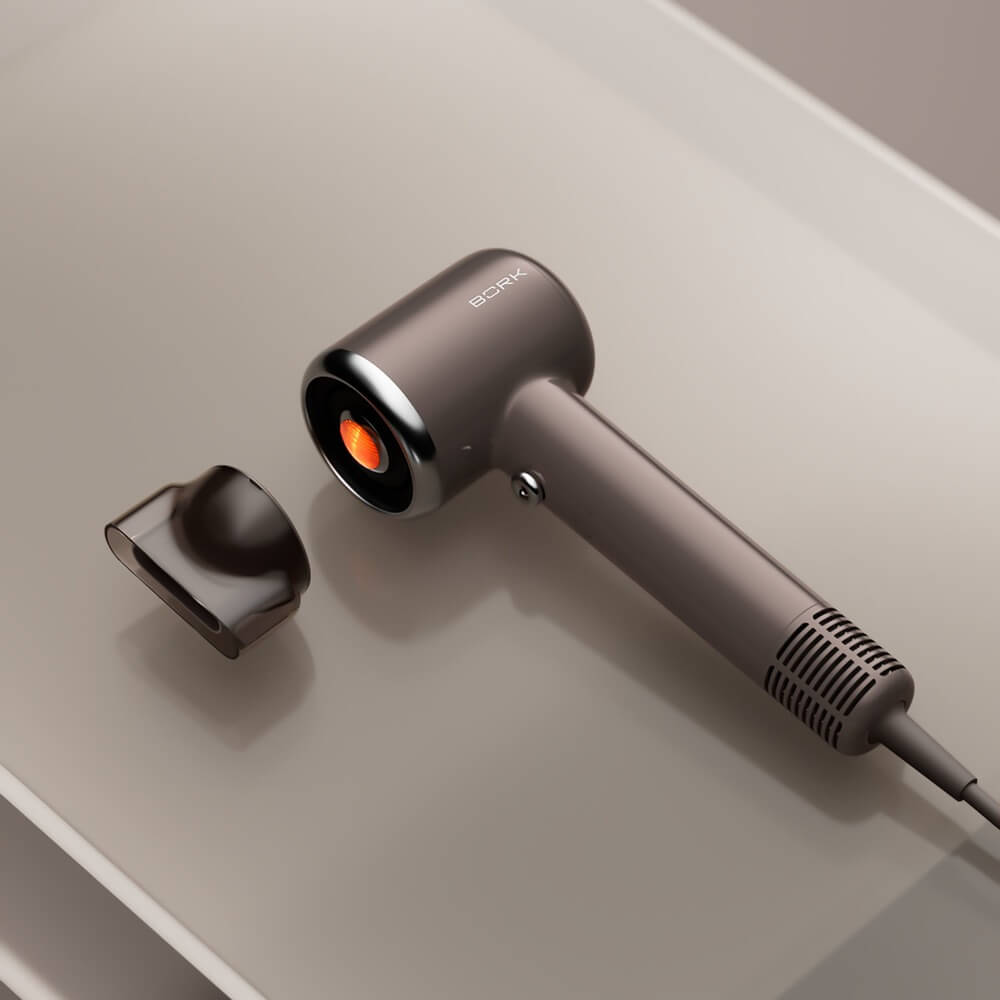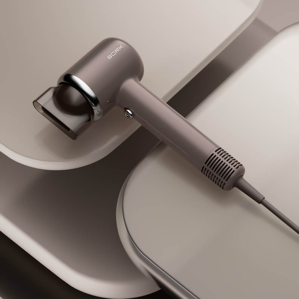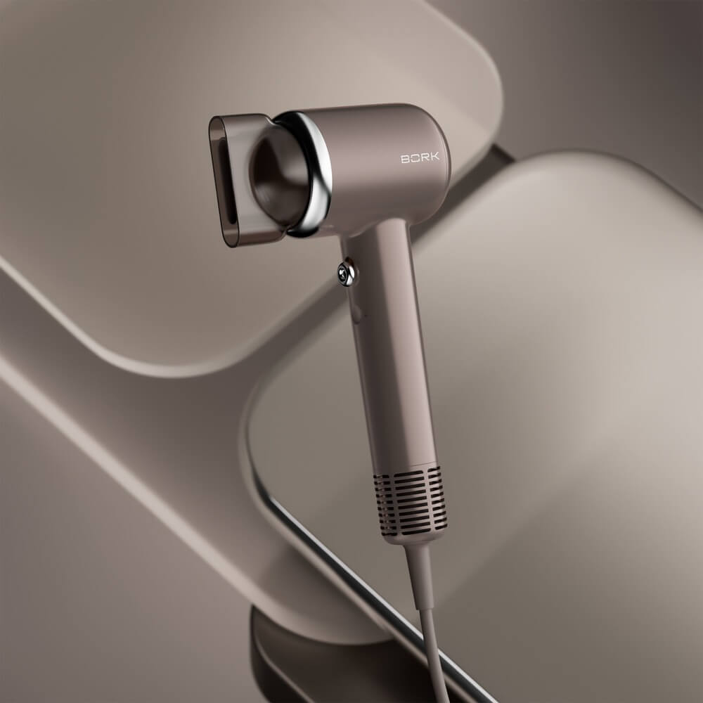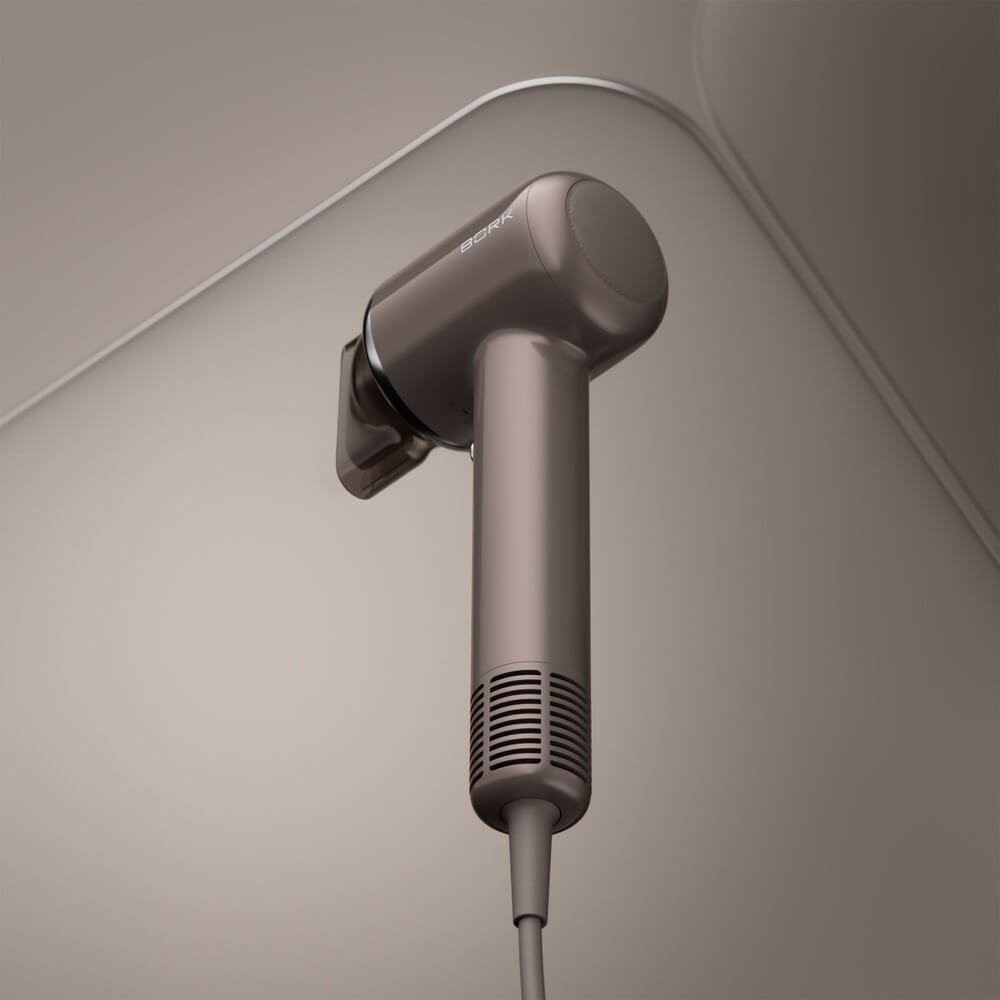 Цвет «грейдж» — изысканный серо-коричневый оттенок — придаёт фену сдержанный, премиальный вид, гармонирующий с любой ванной комнатой или туалетным столиком. Гладкий корпус, выполненный из качественных материалов, устойчив к нагреву, влаге и механическим повреждениям, сохраняя эстетику на долгие годы.