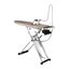 Утюг готов к работе уже через три минуты после включения. Благодаря парогенератору при глажении производится непрерывная подача на белье потока пара под давлением 3,5 бар. В зависимости от типа ткани для достижения лучшего результата можно выбрать подачу пара с каплями воды, сухой пар или холодный обдув, а также одно из трех значений температуры подошвы. Для самого бережного ухода можно использовать режим вертикального отпаривания. Активная гладильная доска может работать в двух режимах — поддува для расправления малейших складок и удобного разглаживания и вакуума для фиксации изделия на поверхности. Резервуар для воды с удобной ручкой можно наполнять в процессе работы. Имеется система защиты от накипи, так что можно использовать водопроводную воду. Доска складывается одним движением, ширина в сложенном состоянии составляет всего 20 см. Ее можно легко перемещать при помощи роликов.