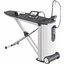 Система включает активный гладильный стол с функциями поддува и отвода пара, позволяющими наилучшим образом расправить одежду. При помощи отпаривателя можно гладить самые деликатные ткани и вещи со сложной отделкой. Режим парового удара поможет справиться с плохо разглаживаемыми вещами, например, из льна. Доску можно плавно отрегулировать по высоте в пределах от 83 до 102 см. Резервуар для воды легко снимается для заполнения. В сложенном виде система занимает совсем немного места, для хранения утюга предусмотрен специальные отсек. Удобные ролики при транспортировке не повреждают пол.