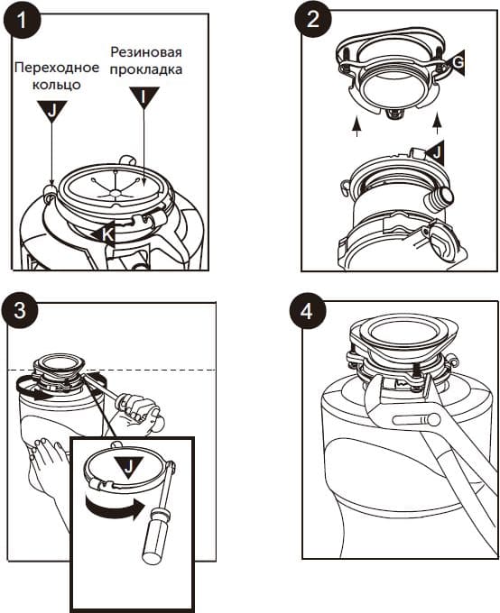 Деталь для присоединения крепежной системы измельчителя — представляет собой кольцо. Устанавливается на сливную трубу вместо аналогичной детали мойки.