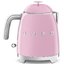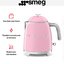 Электрический чайник Smeg KLF05PKEU в корпуса оригинального ярко-розового цвета станет отличным подарком коллеге, маме или бабушке. Объем 0,8 литра позволяет приготовить три чашки чая. Об этот чайник невозможно обжечься, так как корпус и ручка изготовлены из специального термостойкого пластика, а внутренняя часть и носик — из нержавеющей стали. Вы легко подберете коллекцию приборов подобного дизайна в стиле 50-х годов 20 века для любителей ретро-техники. Мини-чайник отличается малыми размерами — его высота составляет всего 20 см, весом всего 1 кг и высокой мощностью, которая достигает 1400 вт. Закипает он очень быстро, чему способствует также скрытый нагревательный элемент.