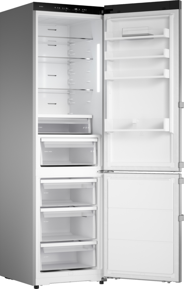 No Frost (Total No Frost, Frost Free): вентилятор обеспечивает циркуляцию охлажденного воздуха, благодаря чему лед не нарастает на стенке, а концентрируется только на скрытом внутри холодильника испарителе. Талая вода собирается в специальной емкости и испаряется. Такой холодильник не нужно размораживать – это экономит время и позволяет не останавливать прибор. Благодаря этим плюсам в современных моделях No Frost – самая распространенная система.