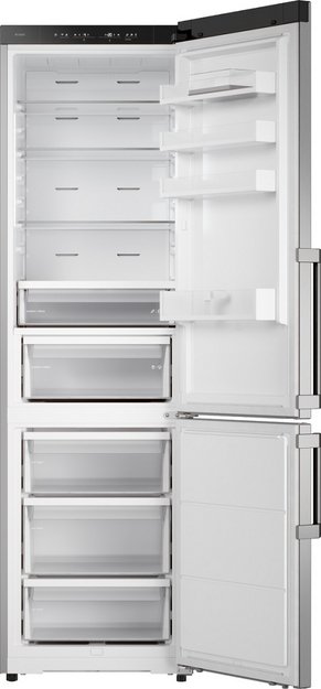 Данная модель — отдельностоящая, поэтому нужно тщательно подобрать место для ее размещения. Благодаря внушительным размерам, в частности высоте, она подходит большим пространствам — просторной кухне, еврогостиной. Вы можете поменять направление открывания двери, так как упор переставляемый и ее можно перевесить на другую сторону. Такая функция открывает больше возможностей для установки. Холодильник с морозильником обладает всеми опциями, которые чаще всего ищут и выбирают покупатели. Стандартная конфигурация — универсальный вариант для любой квартиры. Количество камер: 2.