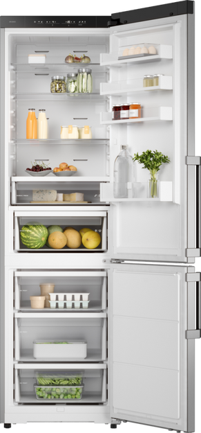 Специальная зона свежести предназначена для правильного и более длительного хранения овощей, фруктов, зелени. В ней поддерживается околонулевая температура, поэтому продукты не перемораживаются и не пересыхают. Система охлаждения этого холодильника — циркуляционная .