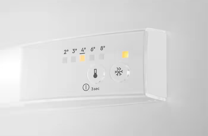 Основным элементом управления в холодильниках с механической или электромеханической системой служит поворотной переключатель с делениями. Поворотом ручки можно регулировать степень охлаждения на нескольких уровнях — от минимального до максимального. Точное значение температуры в таких устройствах установить невозможно. Кроме того, во всех холодильниках присутствует система индикации, которая действует при повышении температуры в камере выше заданного значения, а также лампочка, которая загорается при неплотно закрытой дверце.