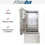 Встраиваемые холодильники монтируются в нишу или колонну. Передняя их часть закрывается декоративным мебельным фасадом и снаружи не отличается от дверцы обычного кухонного шкафа, так что их не нужно подбирать под интерьер помещения. Объем этих холодильников, как правило, несколько меньше, чем у отдельностоящих, так как при встраивании необходимо оставлять свободное пространство для вентиляции. Они отличаются меньшим уровнем шума, а также лучше держат холод и отличаются большей экономичностью из-за дополнительного слоя изоляции. Ассортимент этих холодильников не так велик, как у отдельно стоящих, установка более трудоемкая, а стоимость обычно несколько выше.