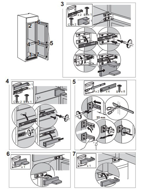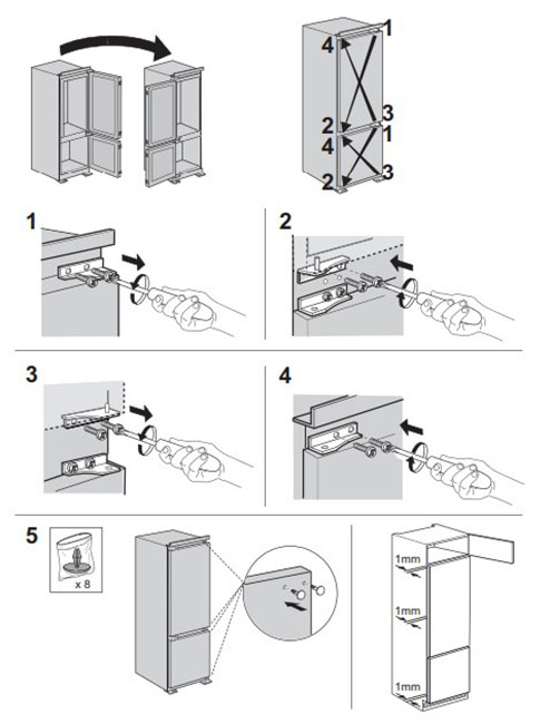 Перевешиваемая дверца холодильника — удобная опция, которая позволяет встроить или установить прибор на кухне, выбрав оптимальное место размещения. По умолчанию открывание дверцы холодильников осуществляется слева направо, под ведущую правую руку. Ситуаций, в которых требуется перенос дверного упора на левую сторону, достаточно много. Прежде всего это планировка кухни. Не везде можно установить холодильник, тем более встраиваемый, так, чтобы дверь открывалась вправо — это особенно важно, если прибор монтируется в уже готовую кухонную мебель. Перенести дверь на другую сторону требуется также, если владелец имеет ведущую левую руку.
