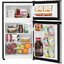 Компактный холодильник Frigidaire имеет две камеры. В холодильном отделении диапазон температур 0-10 градусов, есть зона свежести, в которой долго хранятся овощи и фрукты. На двери специальная полка для бутылок (поместятся даже объемом 2 л). В морозильнике температура опускается до -22 градусов.