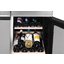 Дверца винного шкафа обычно делается прозрачной, защищенной от ультрафиолета, который может отрицательно повлиять на качество вина. Дополнительная защита позволяет снизить до минимума уровень вибрации. Кроме температуры, в такое деление можно регулировать уровень влажности. Деревянные полки служат для хранения бутылок в горизонтальном положении и могут выдвигаться на телескопических направляющих.
