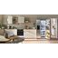 Встраиваемые холодильники монтируются в нишу или колонну. Передняя их часть закрывается декоративным мебельным фасадом и снаружи не отличается от дверцы обычного кухонного шкафа, так что их не нужно подбирать под интерьер помещения. Объем этих холодильников, как правило, несколько меньше, чем у отдельностоящих, так как при встраивании необходимо оставлять свободное пространство для вентиляции. Они отличаются меньшим уровнем шума, а также лучше держат холод и отличаются большей экономичностью из-за дополнительного слоя изоляции. Ассортимент этих холодильников не так велик, как у отдельно стоящих, установка более трудоемкая, а стоимость обычно несколько выше.