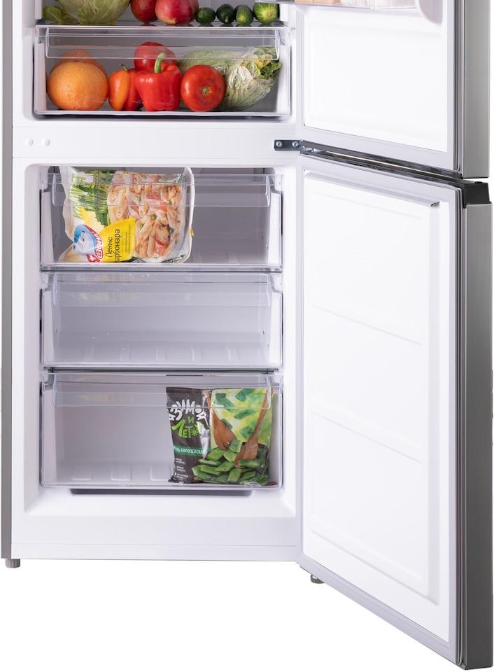 Специальная зона свежести предназначена для правильного и более длительного хранения овощей, фруктов, зелени. В ней поддерживается околонулевая температура, поэтому продукты не перемораживаются и не пересыхают. Система охлаждения этого холодильника — динамическая.