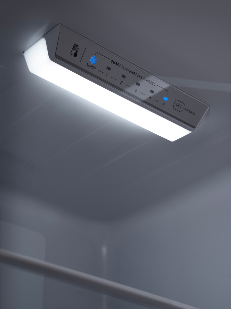Внутреннее освещение холодильной камеры позволяет обеспечить хороший обзор содержимого и быстро найти необходимые продукты. Чем меньше времени будет открыта дверца холодильника, тем лучше будет поддерживаться в камере выбранная температура, следовательно, улучшится и качество хранения продуктов.