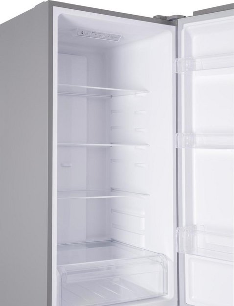 Данная модель — отдельностоящая, поэтому нужно тщательно подобрать место для ее размещения. Благодаря внушительным размерам, в частности высоте, она подходит большим пространствам — просторной кухне, еврогостиной. Вы можете поменять направление открывания двери, так как упор переставляемый и ее можно перевесить на другую сторону. Такая функция открывает больше возможностей для установки. Холодильник с морозильником обладает всеми опциями, которые чаще всего ищут и выбирают покупатели. Стандартная конфигурация — универсальный вариант для любой квартиры. Количество камер: 2.