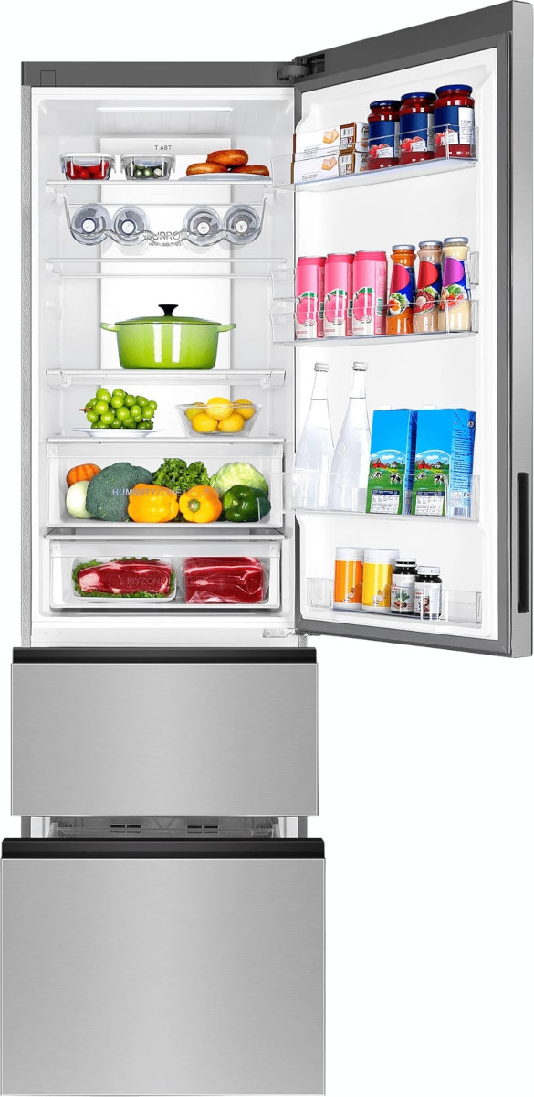 Трехкамерные модели выпускаются в нескольких вариантах. В некоторых случаях в качестве третьей камеры поступает так называемая зона свежести — отделение, где поддерживается температура около 0 градусов. В другом варианте подобные модели имеют морозильную камеру, состоящую из двух выдвижных ящиков.