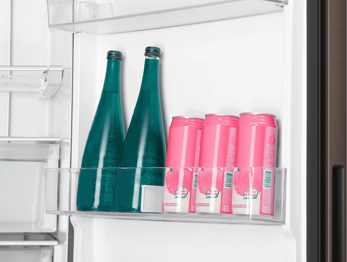 Внутреннее пространство организовано для удобства реальной семьи: общий полезный объем 389 л разделён на 286 л в холодильной и 103 л в морозильной части. Стеклянные полки выдерживают тяжёлые блюда и легко очищаются. В дверных карманах и отделении для бутылок найдётся место для разнообразных напитков. Зона свежести объёмом 22 л с двумя контейнерами и одной камерой HumidityZone позволяет контролировать влажность, что продлевает срок хранения фруктов и овощей.