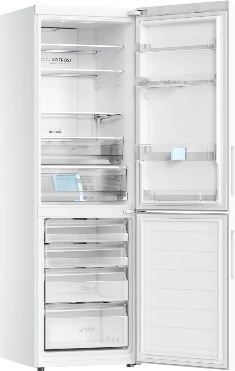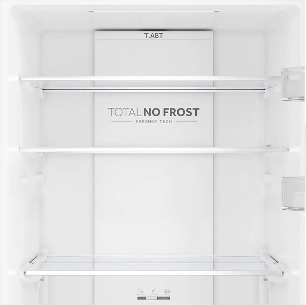 No Frost (Total No Frost, Frost Free): вентилятор обеспечивает циркуляцию охлажденного воздуха, благодаря чему лед не нарастает на стенке, а концентрируется только на скрытом внутри холодильника испарителе. Талая вода собирается в специальной емкости и испаряется. Такой холодильник не нужно размораживать – это экономит время и позволяет не останавливать прибор. Благодаря этим плюсам в современных моделях No Frost – самая распространенная система.