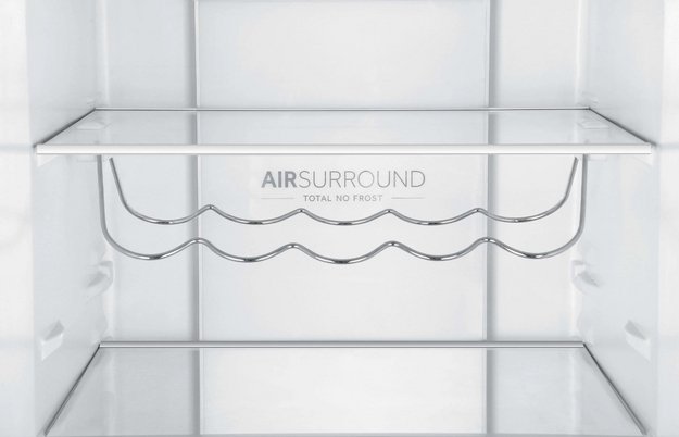 No Frost (Total No Frost, Frost Free): вентилятор обеспечивает циркуляцию охлажденного воздуха, благодаря чему лед не нарастает на стенке, а концентрируется только на скрытом внутри холодильника испарителе. Талая вода собирается в специальной емкости и испаряется. Такой холодильник не нужно размораживать – это экономит время и позволяет не останавливать прибор. Благодаря этим плюсам в современных моделях No Frost – самая распространенная система.