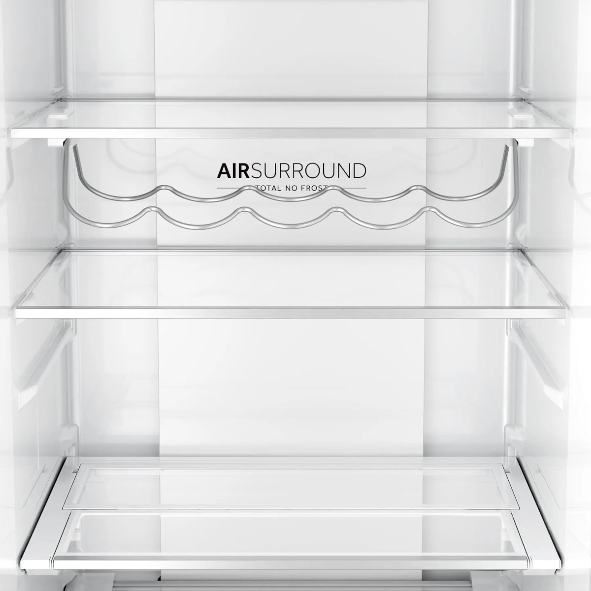 No Frost (Total No Frost, Frost Free): вентилятор обеспечивает циркуляцию охлажденного воздуха, благодаря чему лед не нарастает на стенке, а концентрируется только на скрытом внутри холодильника испарителе. Талая вода собирается в специальной емкости и испаряется. Такой холодильник не нужно размораживать – это экономит время и позволяет не останавливать прибор. Благодаря этим плюсам в современных моделях No Frost – самая распространенная система.