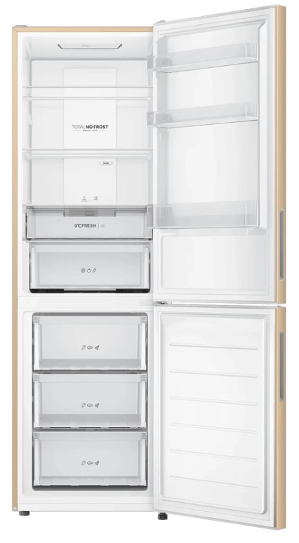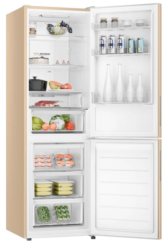 No Frost (Total No Frost, Frost Free): вентилятор обеспечивает циркуляцию охлажденного воздуха, благодаря чему лед не нарастает на стенке, а концентрируется только на скрытом внутри холодильника испарителе. Талая вода собирается в специальной емкости и испаряется. Такой холодильник не нужно размораживать – это экономит время и позволяет не останавливать прибор. Благодаря этим плюсам в современных моделях No Frost – самая распространенная система.