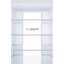Внутреннее пространство организовано для удобства повседневного использования. Четыре стеклянные полки выдерживают вес посуды и больших упаковок, легко моются и безопасны к использованию при резких перепадах температур. Два ящика для овощей и один большой лоток дают возможность раздельного хранения зелени и крупных овощей. На дверце расположены три полки для бутылок и соусов, а специальная подставка для яиц помогает упорядочить мелкие продукты. Светодиодная подсветка равномерно освещает камеры, не создавая тёплого пятна, и экономит электроэнергию.