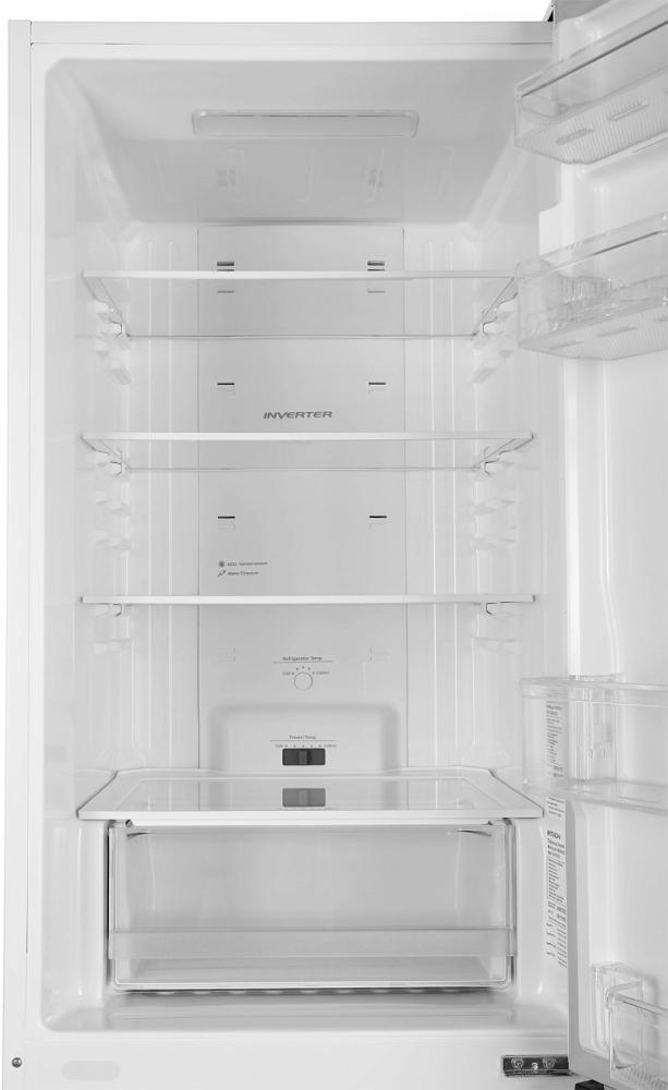 Данная модель — отдельностоящая, поэтому нужно тщательно подобрать место для ее размещения. Благодаря внушительным размерам, в частности высоте, она подходит большим пространствам — просторной кухне, еврогостиной. Холодильник с морозильником обладает всеми опциями, которые чаще всего ищут и выбирают покупатели. Стандартная конфигурация — универсальный вариант для любой квартиры. Количество камер: 2.