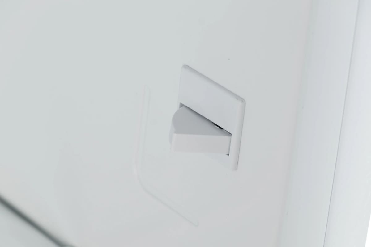 Внешняя ручка может не только послужить для открывания дверцы, но и стать интересной деталью интерьера. Особенно это касается ручек в ретро-стиле со встроенным толкателем и замком. Однако подобные элементы являются достаточно небезопасными, так как холодильник невозможно открыть изнутри. Обычные накладные дверные ручки устанавливаются на холодильник в вертикальном или горизонтальном положении. При этом особенной популярностью пользуются вертикальные ручки, идущие по всей длине камеры. Такая конструкция подойдет для людей любого роста.