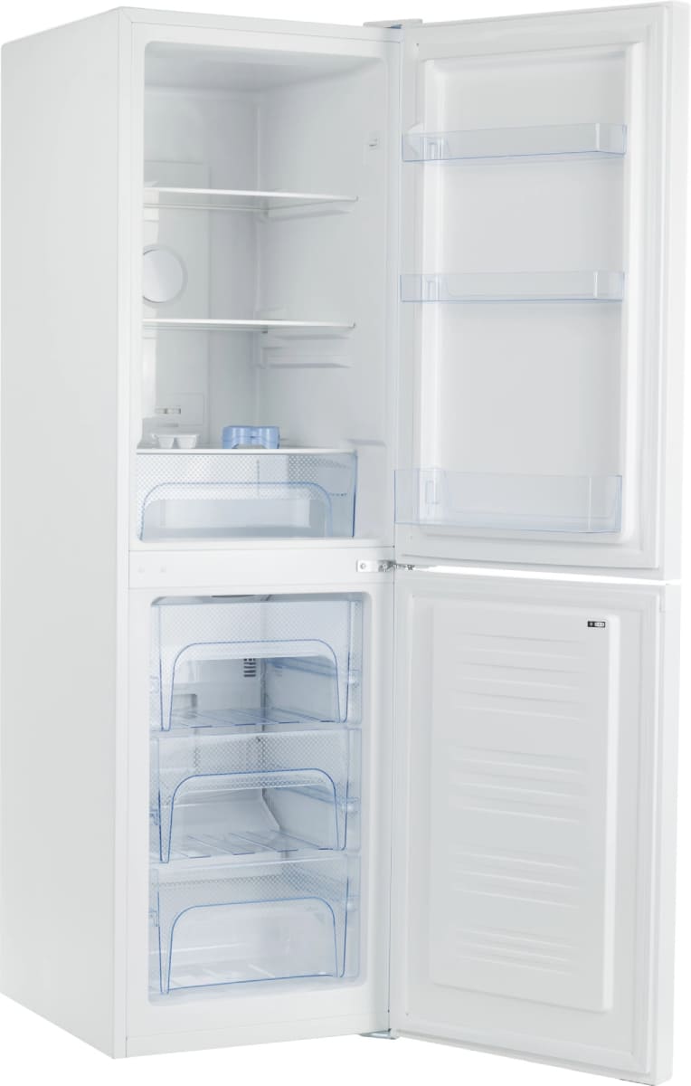 Стандартная ширина наиболее распространенных моделей двухкамерных холодильников с морозильной камерой снизу составляет порядка 60 см, что соответствует ширине обычной кухонной тумбы. Подобный холодильник будет смотреться уместно и не громоздко в любой кухне. Ширину 57-60 см имеют как двухдверные холодильники средней высоты, так и высокие модели. Все большую популярность приобретают узкие модели шириной 50 см, вместимость которых увеличивается за счет большой высоты от 180 см.