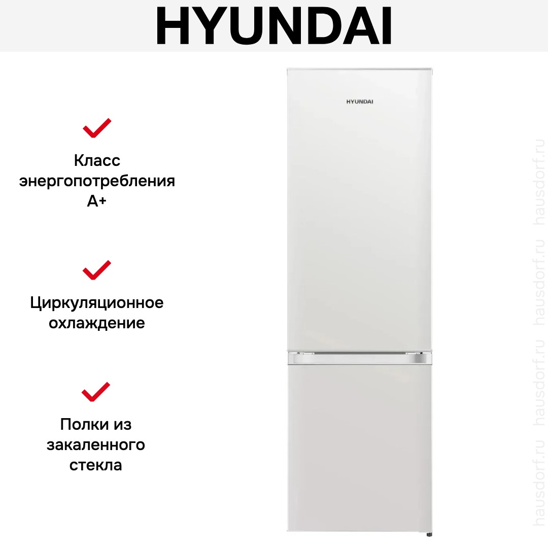 Холодильник с морозильником Hyundai CC30031A — отдельно стоящая двухкамерная модель белого цвета с металлическим корпусом. При высоте 178 см, ширине 55 см и глубине 58,6 см выглядит стройно и уверенно встраивается в кухонное пространство. Габариты ВхШхГ — 178×55×58,6 см, размеры упаковки — 182×57×62 см. Фасад с встроенной ручкой образует ровную плоскость без выступающих деталей, удобно протирать и ничего не цепляется. Две двери с упором справа легко открываются, а при изменении планировки их можно перевесить. Брутто-вес 53 кг упрощает организацию перевозки, нетто — 44 кг.