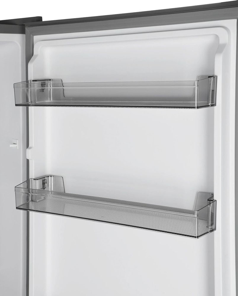 Данная модель — отдельностоящая, поэтому нужно тщательно подобрать место для ее размещения. Благодаря внушительным размерам, в частности высоте, она подходит большим пространствам — просторной кухне, еврогостиной. Вы можете поменять направление открывания двери, так как упор переставляемый и ее можно перевесить на другую сторону. Такая функция открывает больше возможностей для установки. Холодильник с морозильником обладает всеми опциями, которые чаще всего ищут и выбирают покупатели. Стандартная конфигурация — универсальный вариант для любой квартиры. Количество камер: 2.
