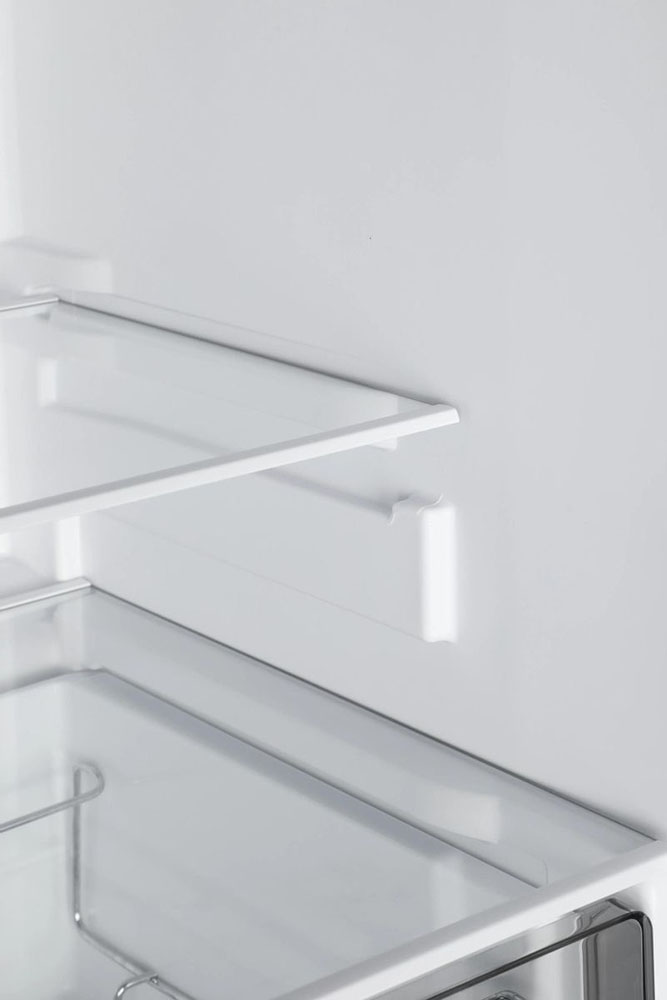 Полки в отделении бывают нескольких типов. Чаще всего встречаются полки из закаленного или ударопрочного стекла. Закаленное стекло выдерживает особенно большие нагрузки до 25 кг, так что на них можно устанавливать посуду из любого материала. Стекло является безопасным нейтральным материалом, не желтеет и не портится со временем, а также быстро и легко моется. Для того чтобы предотвратить проливание жидкости, полки оснащаются металлической или пластиковой окантовкой.
