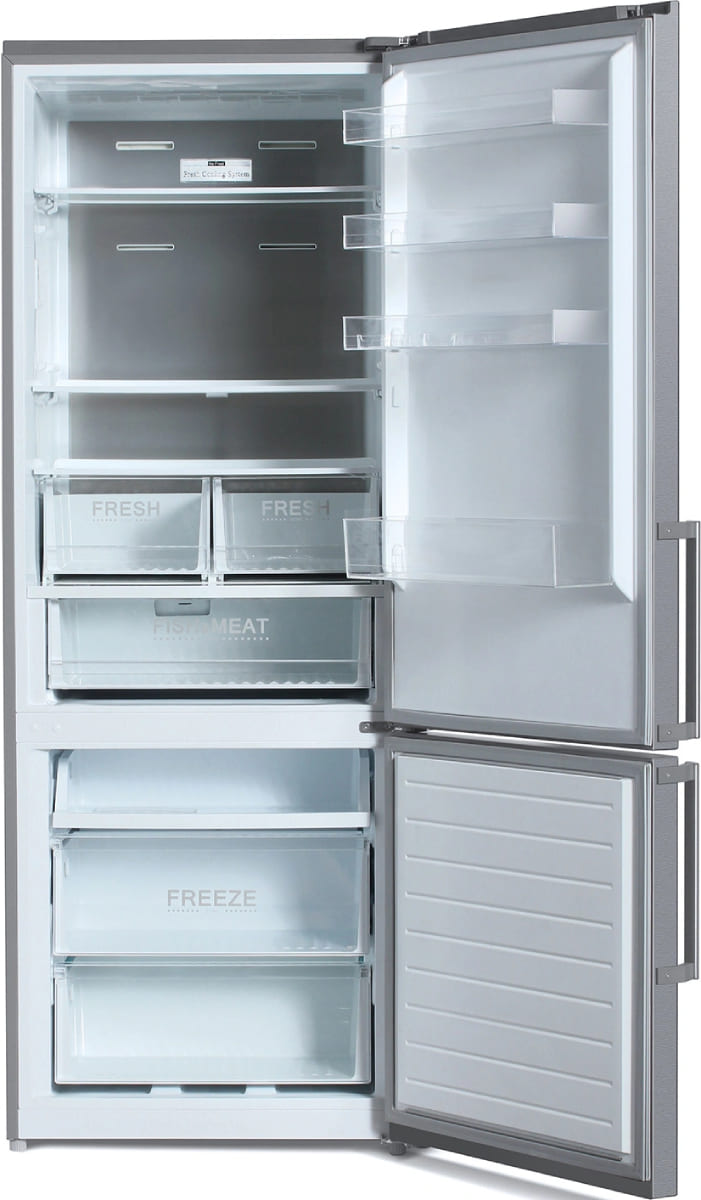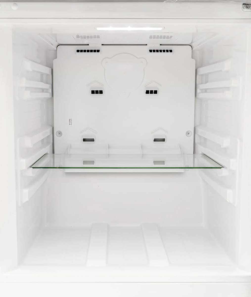 No Frost (Total No Frost, Frost Free): вентилятор обеспечивает циркуляцию охлажденного воздуха, благодаря чему лед не нарастает на стенке, а концентрируется только на скрытом внутри холодильника испарителе. Талая вода собирается в специальной емкости и испаряется. Такой холодильник не нужно размораживать – это экономит время и позволяет не останавливать прибор. Благодаря этим плюсам в современных моделях No Frost – самая распространенная система.