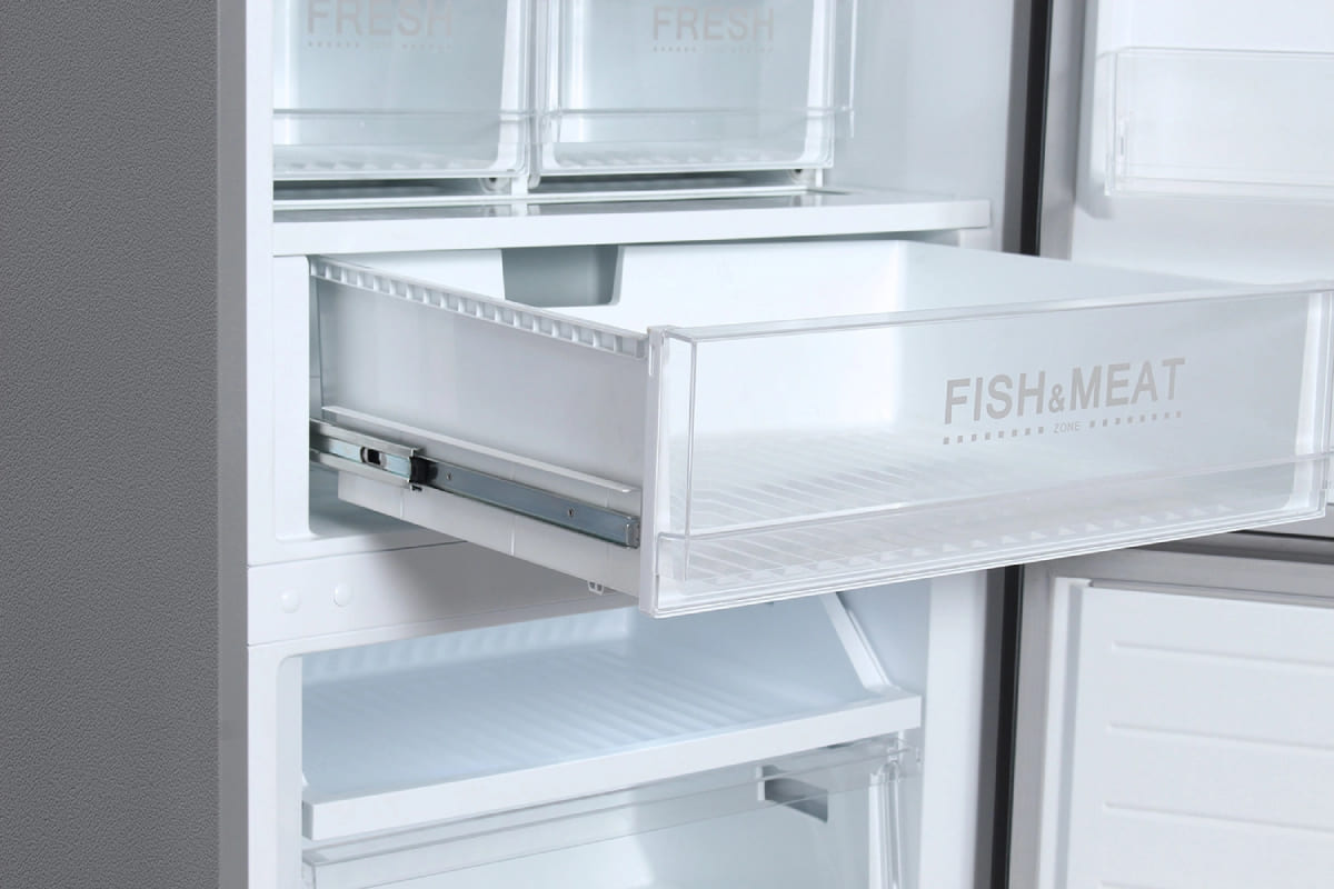 Трехкамерные модели выпускаются в нескольких вариантах. В некоторых случаях в качестве третьей камеры поступает так называемая зона свежести — отделение, где поддерживается температура около 0 градусов. В другом варианте подобные модели имеют морозильную камеру, состоящую из двух выдвижных ящиков.